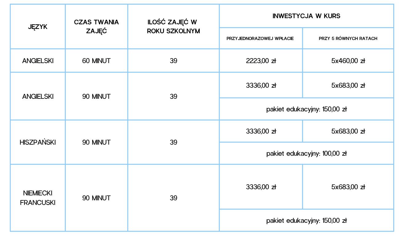 Kurs języka angielskiego, hiszpańskiego, francuskiego i niemieckiego