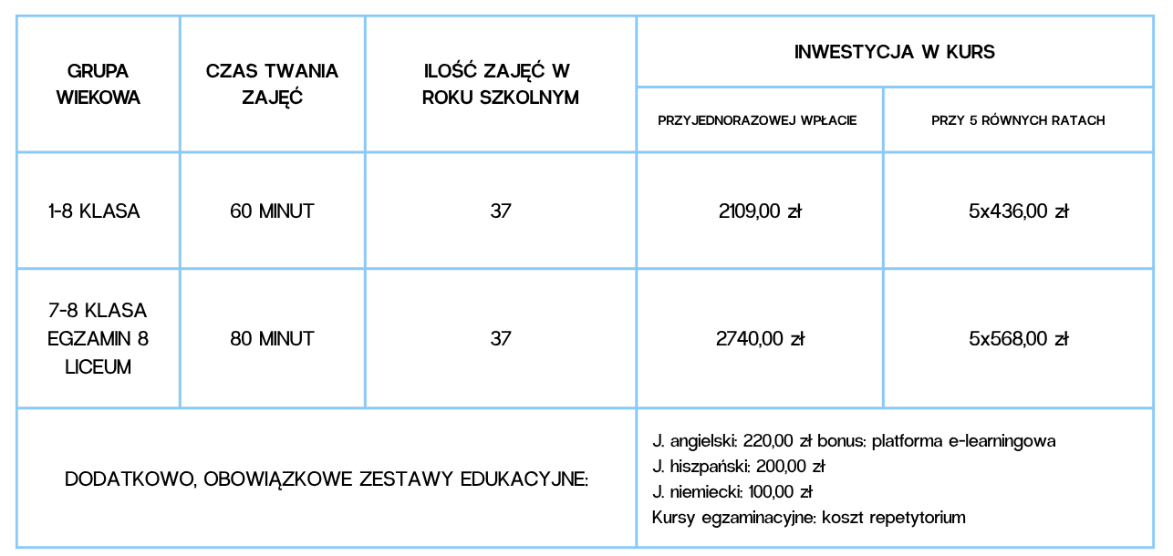• kursy grupowe – dla tych, którzy preferują naukę w towarzystwie innych osób, co sprzyja motywacji i praktyce komunikacyjnej.